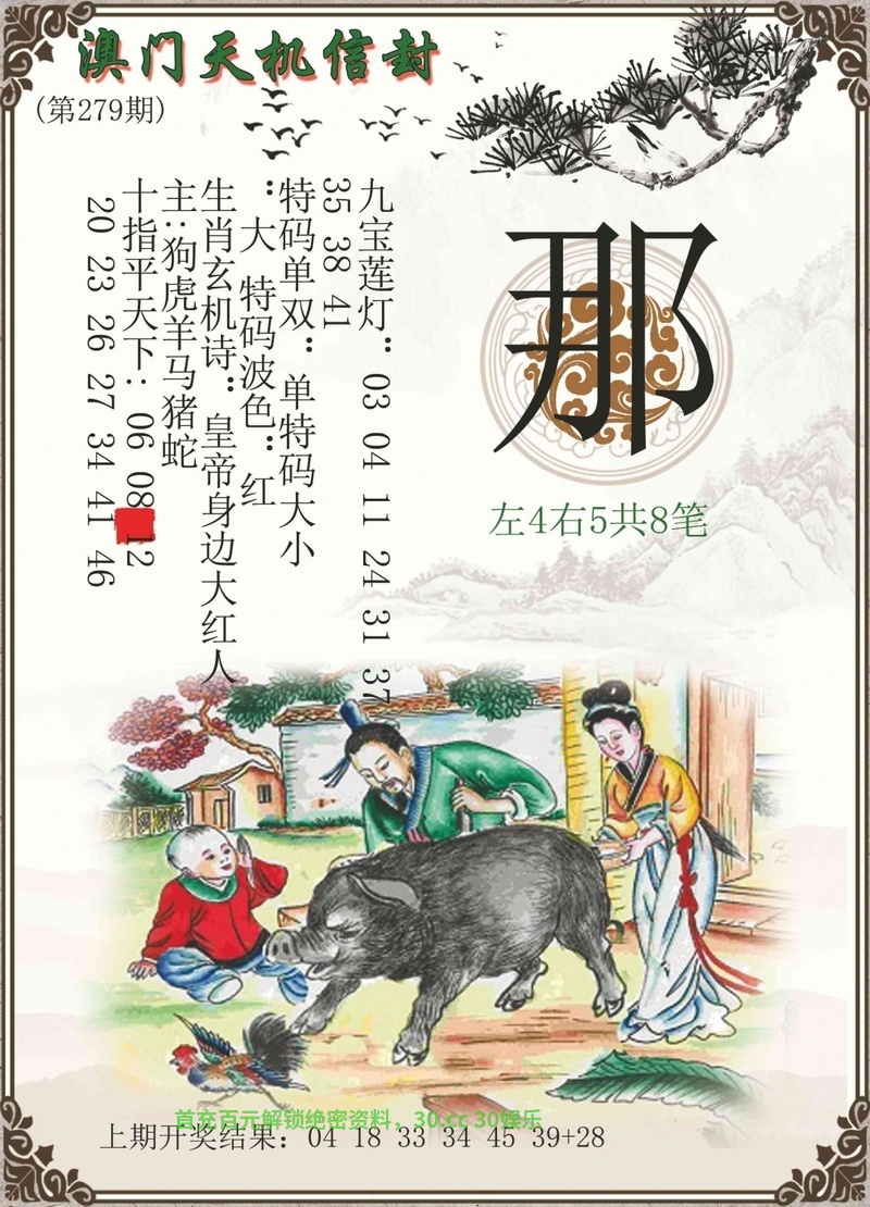 276期:绝杀五码【04.08.11.28.35】开:鸡09准